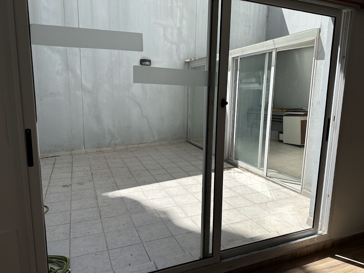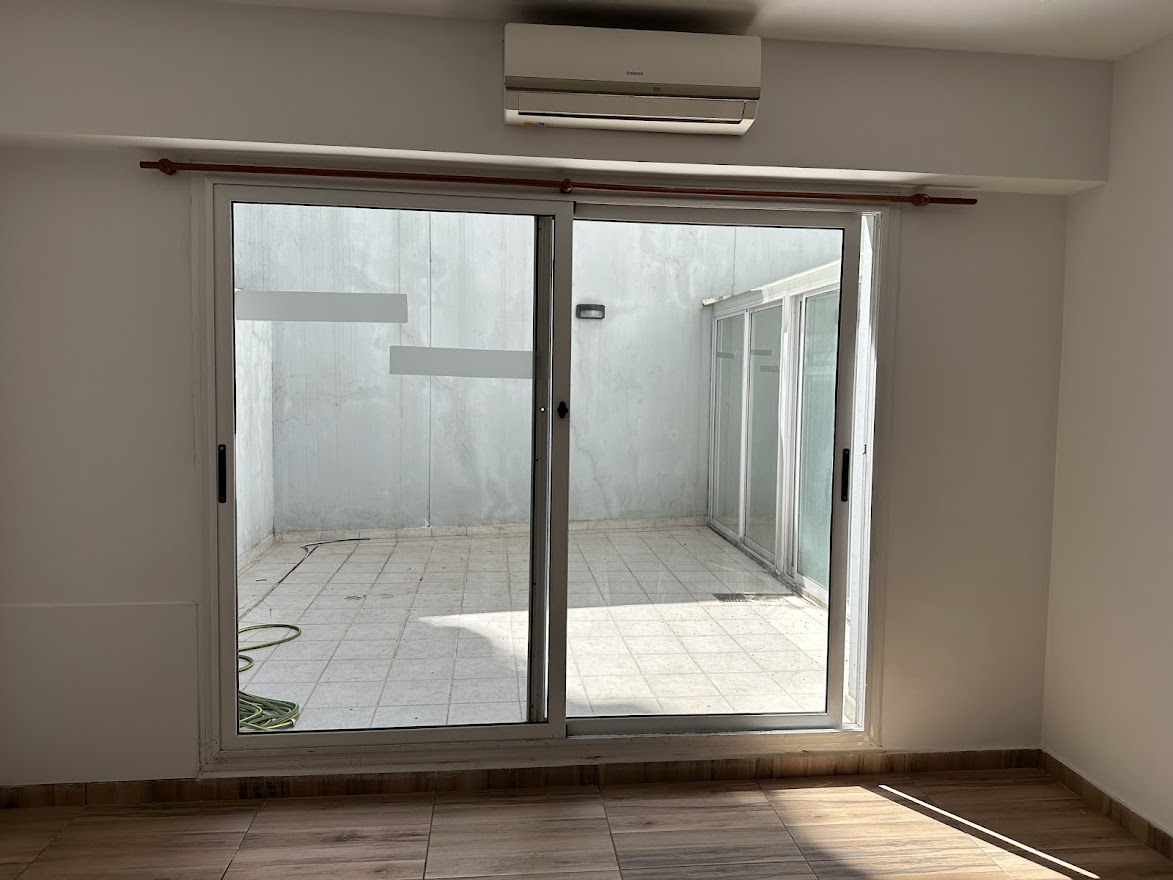 Hermoso departamento de 2 ambientes, con amplio patio soleado. La mitad del patio cuenta con un cerramiento con techo y puertas corredizas. 75 mts totales.