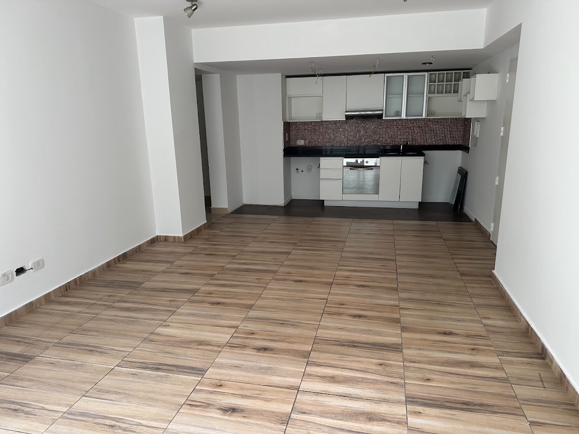 Amplio living comedor con cocina americana integrada, espacio con conexión para lavarropas. Cocina eléctrica. Agua caliente central.